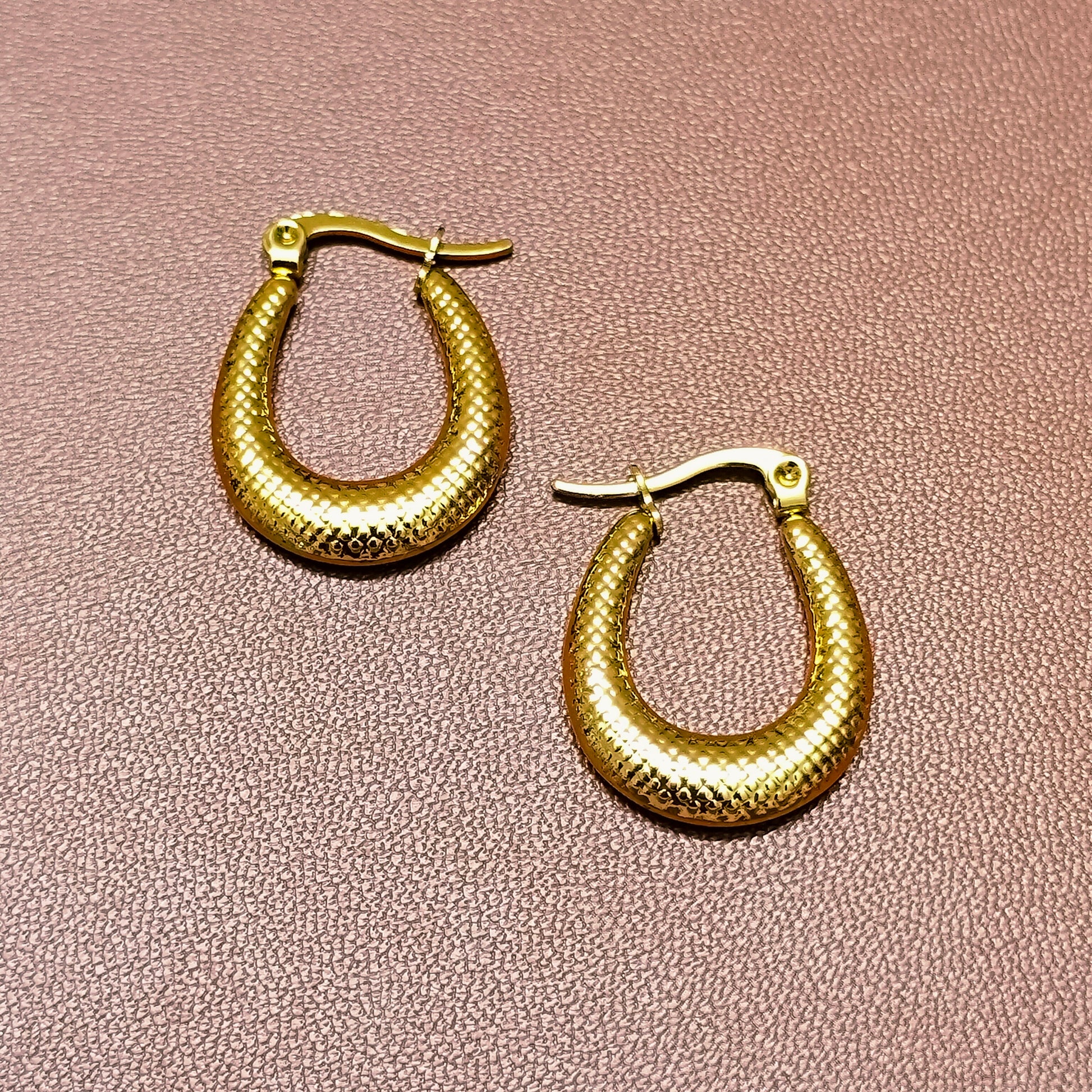 Commanding yet refined, the Auric Bold Hoops embody confidence in its purest form. Sculpted with a sleek, voluminous silhouette and finished in 18K gold plating, they radiate a molten brilliance that elevates every look. A statement of strength, grace, and timeless allure. Designed for the woman who owns her shine.