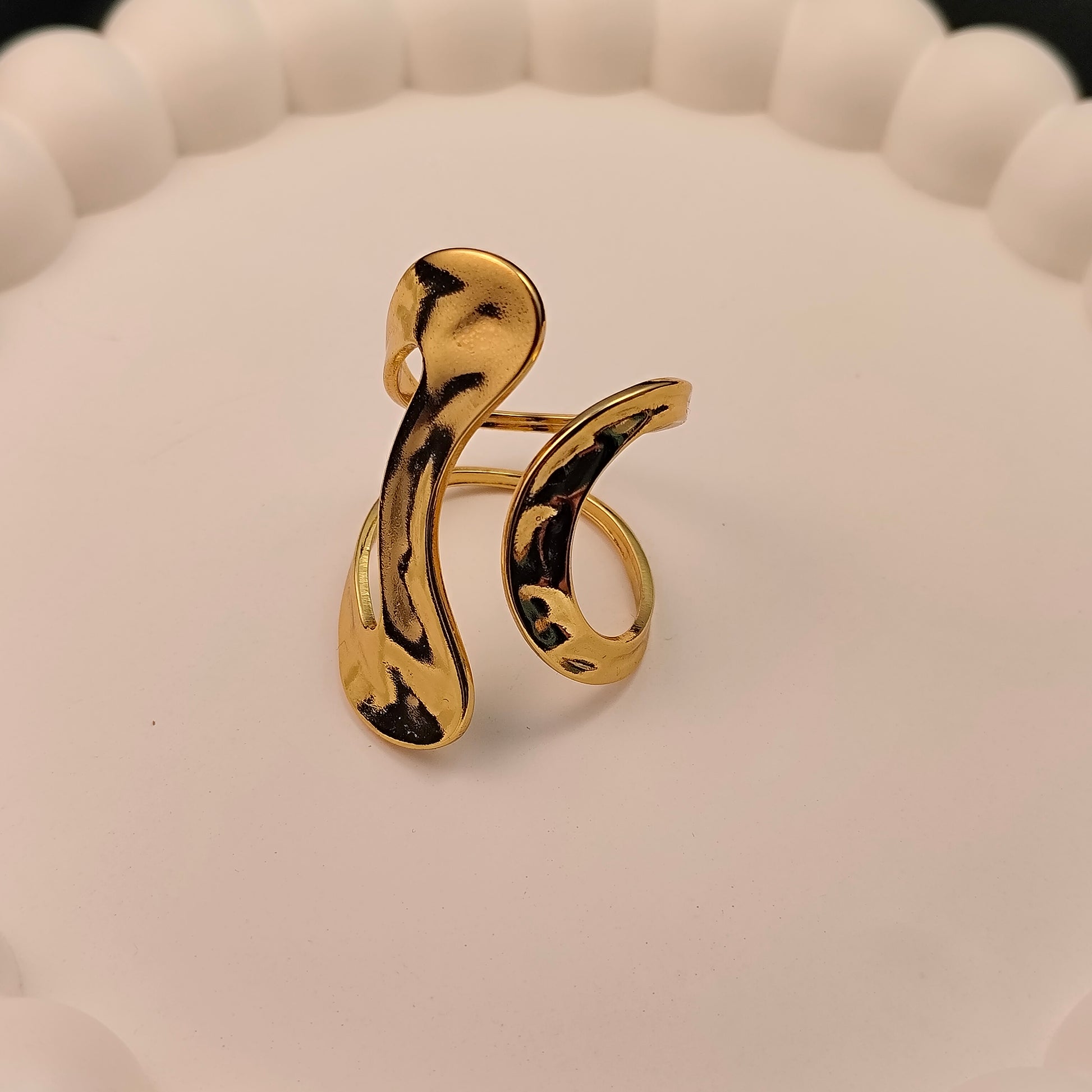 Sculpted with bold contours and a striking silhouette, the Golden Statement Ring is designed to stand out. Its modern, freestyle form radiates confidence and individuality, while the adjustable fit ensures comfort without compromising on elegance.