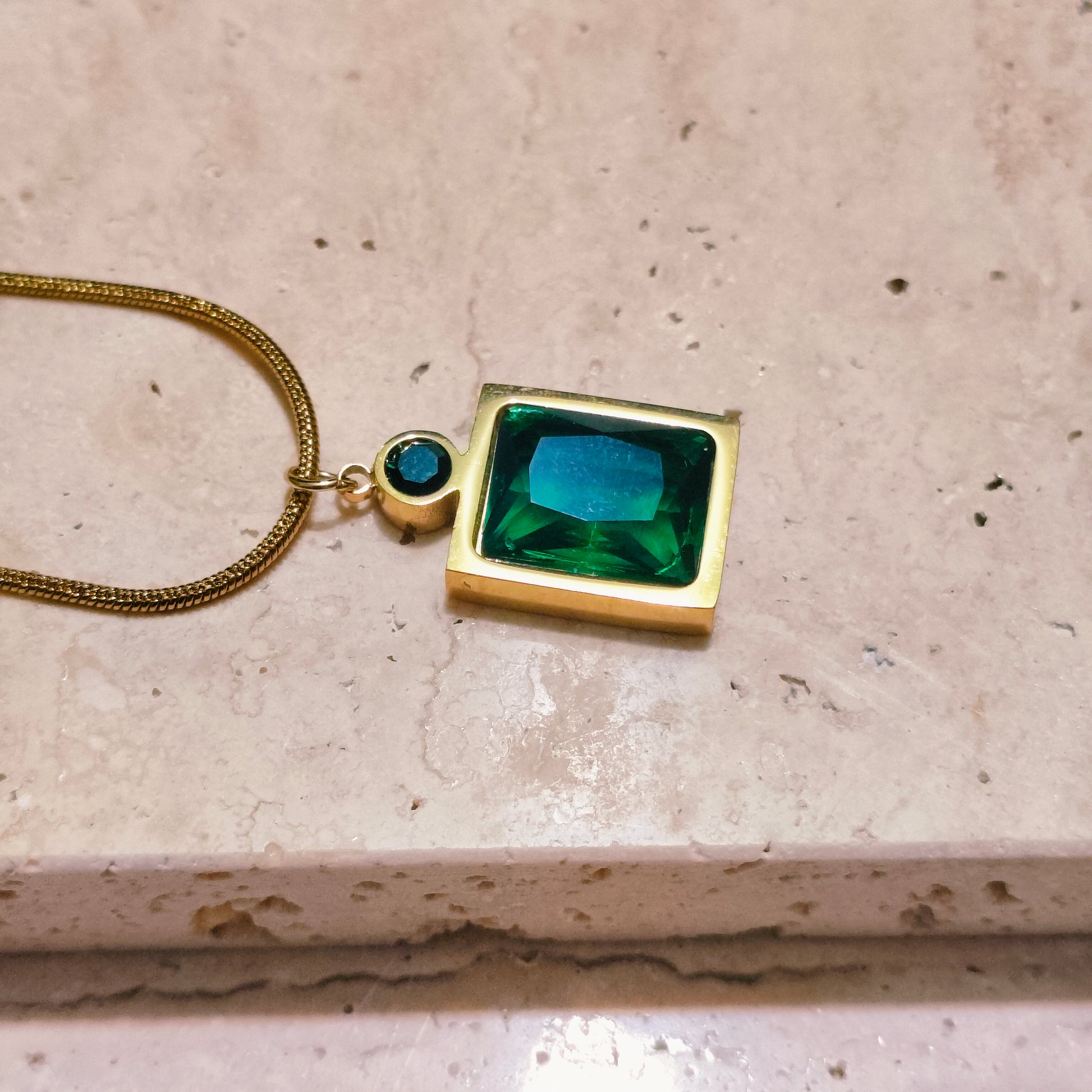 Radiant and refined, the Green Aura pendant mirrors the calm strength of nature. With its rich green tone framed in warm 18K gold plating, it evokes balance, growth, and timeless elegance. A modern essential. Graceful, grounded, and effortlessly captivating.