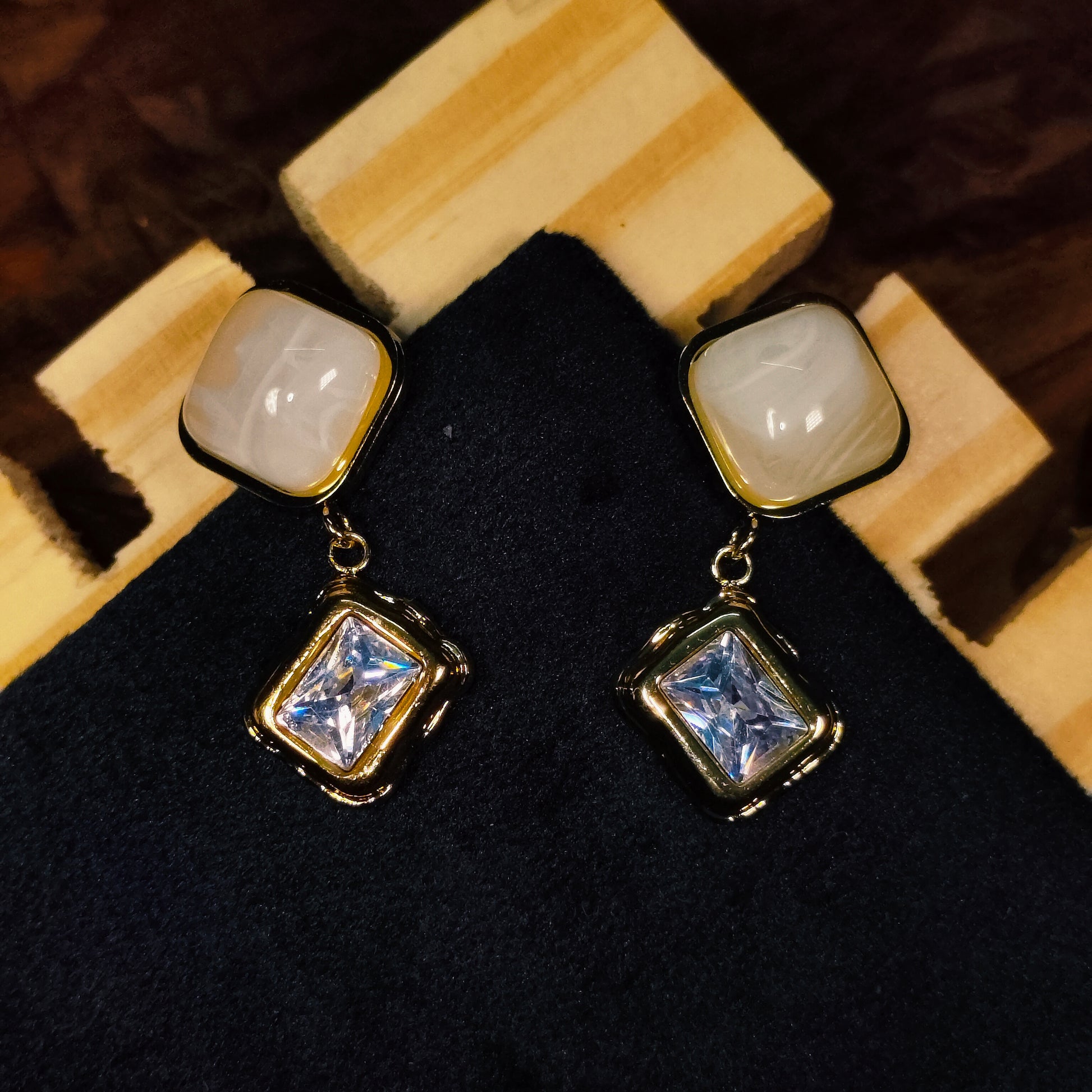 Graceful and gleaming, the Lustrous Radiance Earrings capture the essence of refined beauty. Featuring white oriental diamonds in radiant cut paired with luminous white stones, they exude purity, sophistication, and timeless charm. Plated in 18K gold, each pair is a reflection of understated luxury, designed to shine effortlessly from day to night.