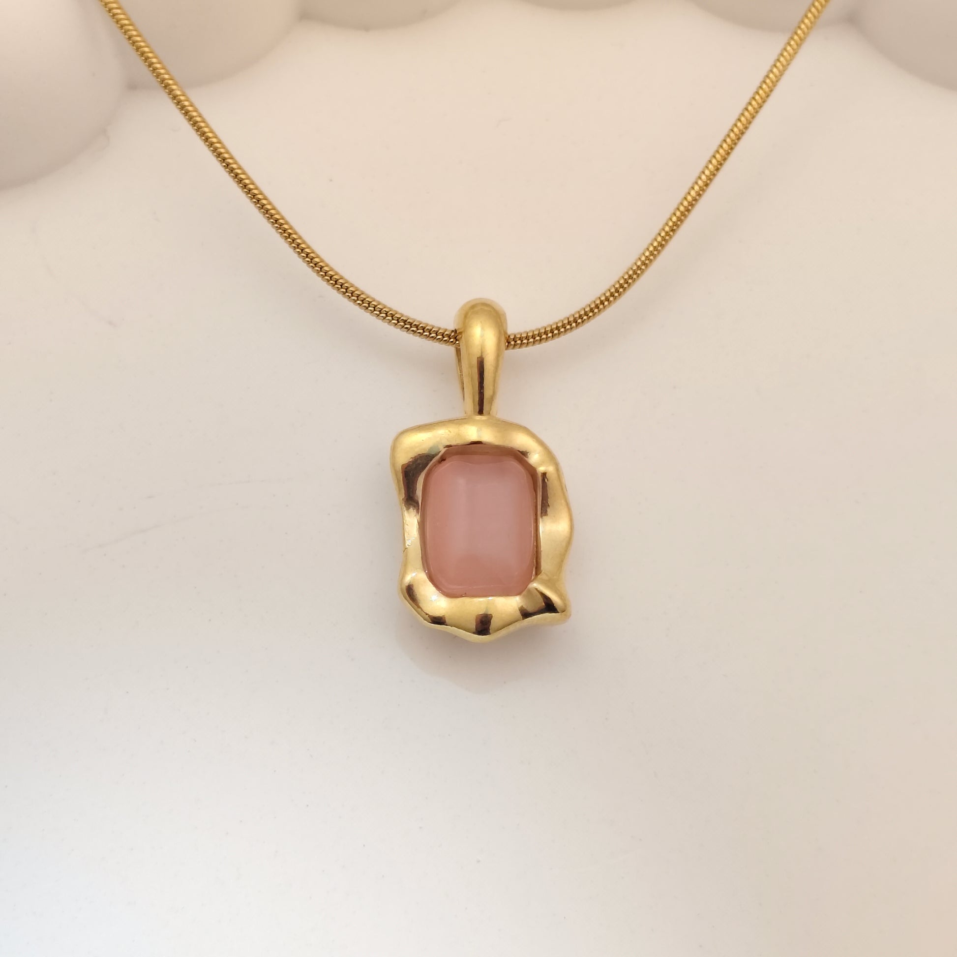 Fluid, feminine, and effortlessly elegant. The Pink Flow pendant mirrors the gentle rhythm of grace in motion. Its soft pink tone, framed by molten-like golden edges, captures the beauty of fluid artistry. A modern expression of charm and confidence, made to glow with you through every moment.